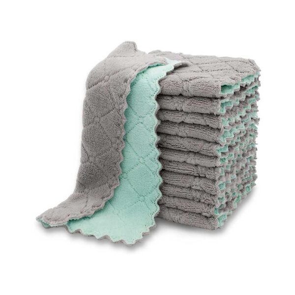 kimteny 12 Pack Kitchen Cloth Dish Towels, Premium Dishcloths, Super Absorbent Coral Velvet Dishtowels, Nonstick Oil Washable Fast Drying (Green-Grey)